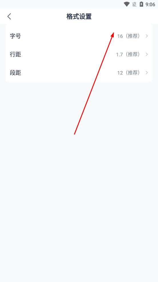 3、在格式設(shè)置頁面中,點(diǎn)擊字號選項(xiàng),進(jìn)入設(shè)置字體大小頁面。
