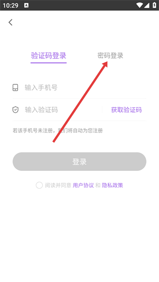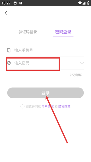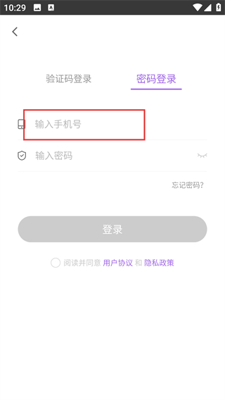 2、在密碼登錄頁面,點擊輸入框輸入手機號。