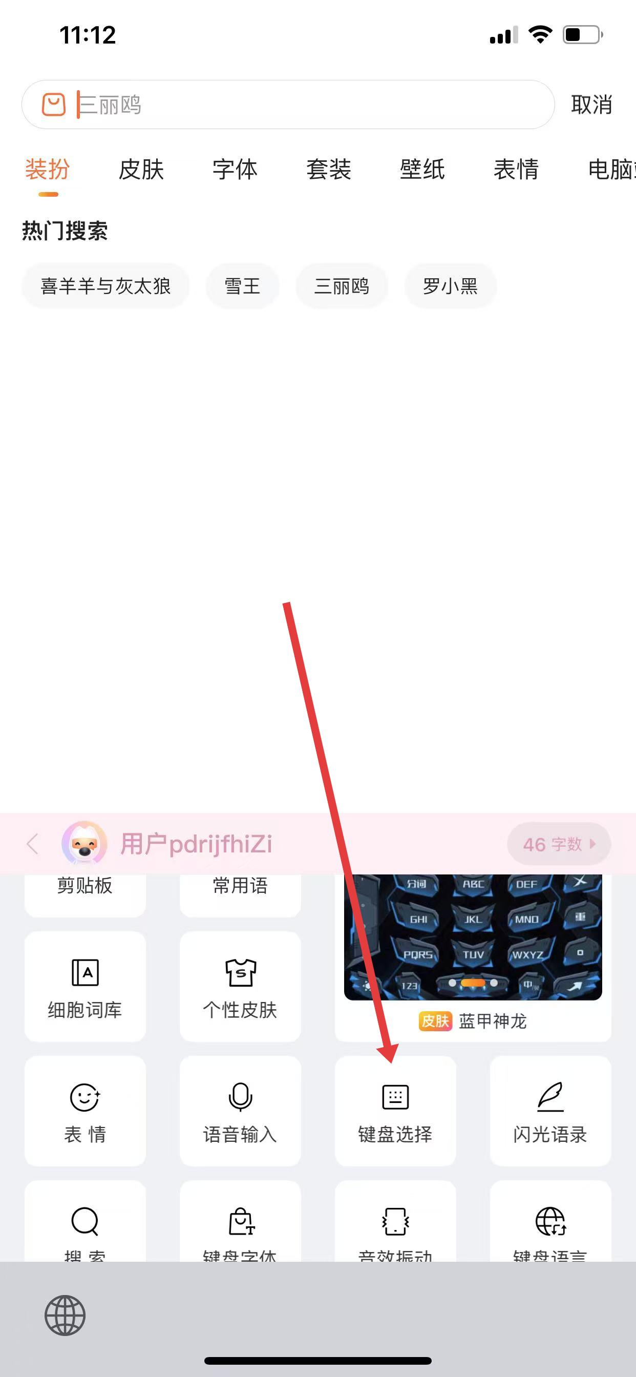 2、在彈出的菜單中,點擊鍵盤選擇選項。