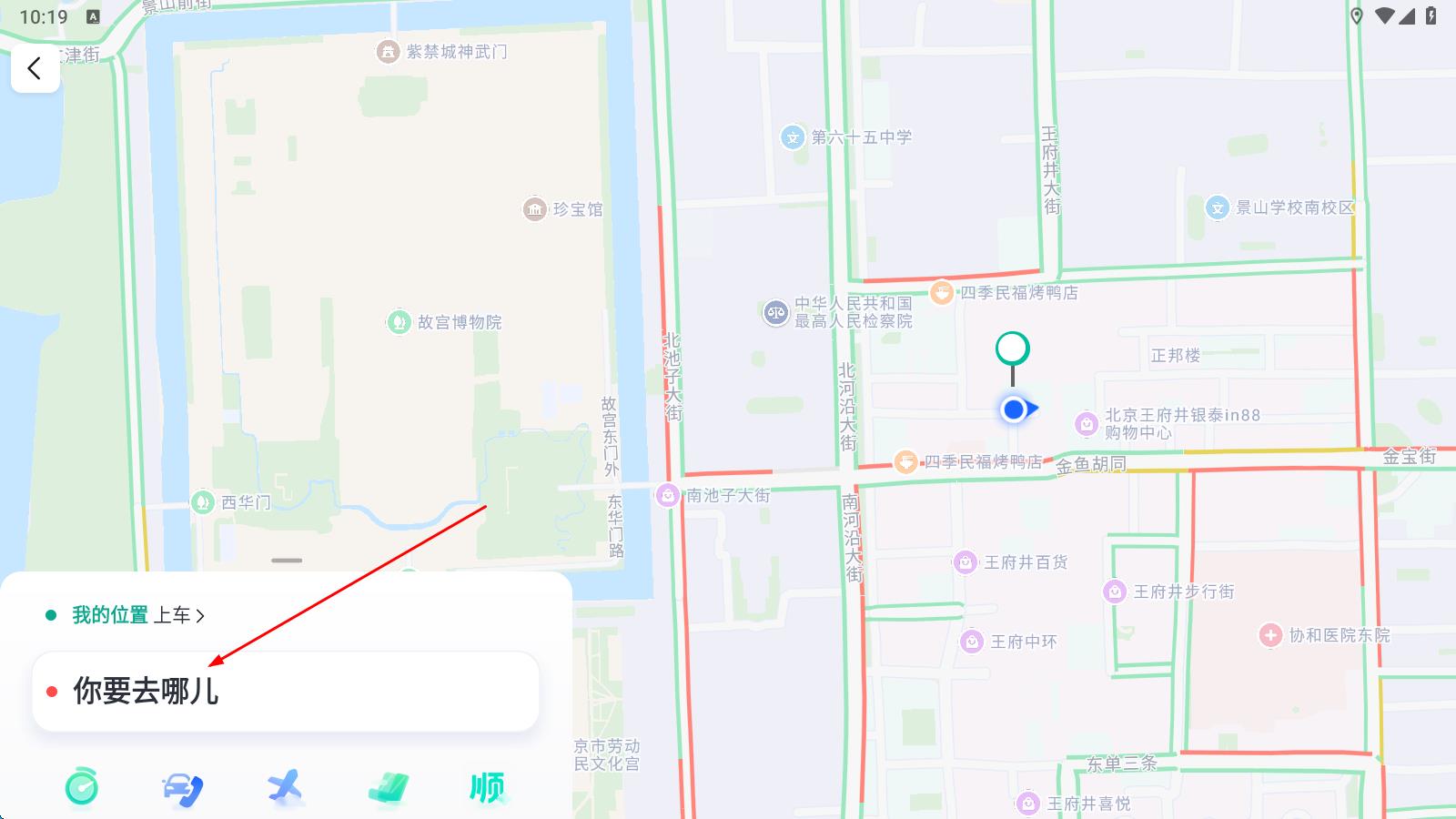3、在“你要去哪兒”輸入框,填寫目的地信息,完成后等待系統(tǒng)匹配車輛,即可發(fā)起打車訂單。