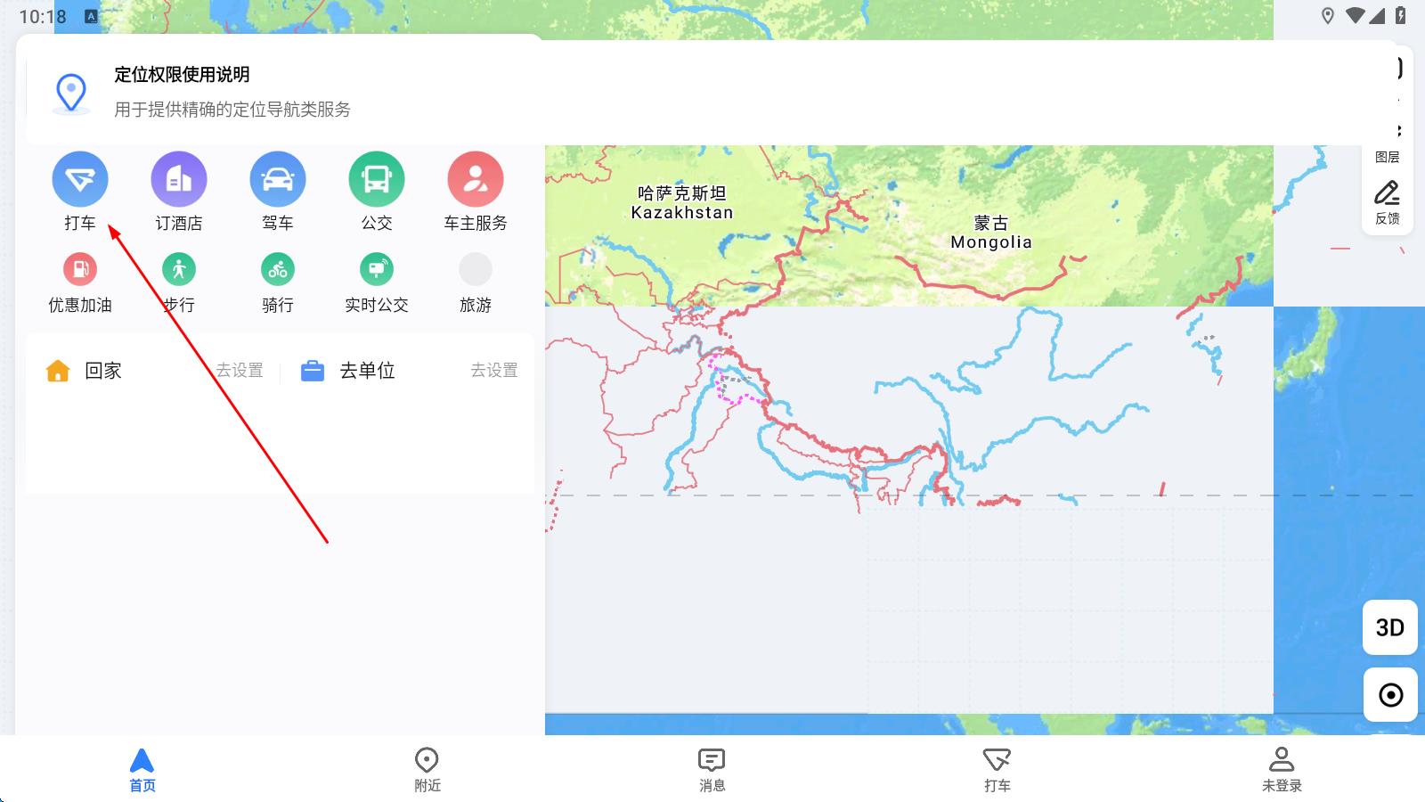 1、打開地圖軟件,在首頁找到“打車”圖標(biāo),點擊進(jìn)入打車功能界面,準(zhǔn)備叫車服務(wù)。