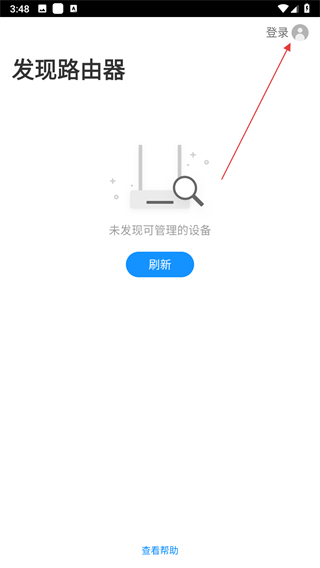 1、打開TPLINK手機(jī)互聯(lián)應(yīng)用,在發(fā)現(xiàn)路由器界面,點(diǎn)擊右上角的登錄按鈕。