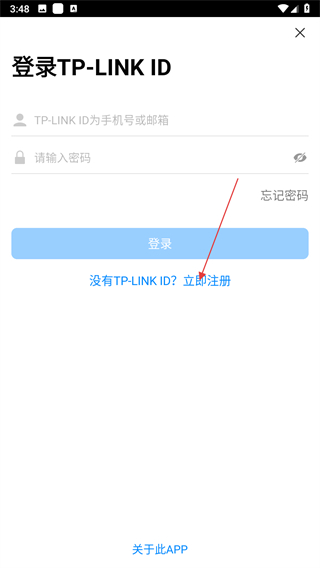 2、進(jìn)入登錄TP-LINK ID頁面,點(diǎn)擊下方?jīng)]有TP-LINK ID?立即注冊選項(xiàng)。