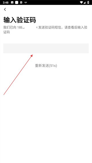 4、應(yīng)用會向你輸入的手機(jī)號碼發(fā)送驗(yàn)證碼短信,輸入接收到的驗(yàn)證碼,完成注冊。