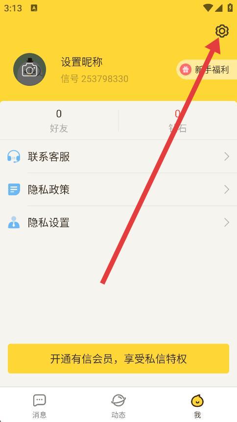 2、在我的頁面中,點(diǎn)擊右上角的齒輪狀設(shè)置圖標(biāo),進(jìn)入應(yīng)用設(shè)置界面。