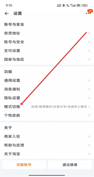3、在進入到設(shè)置頁面后,可以點擊模式切換選項,進行切換使用模式。