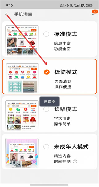 4、在模式切換頁面中,點擊極簡模式按鈕,即可完成該模式的切換操作。