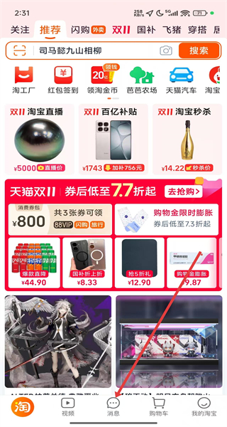 1、可以在首頁里,點擊消息按鈕,進入查看相關(guān)信息功能。