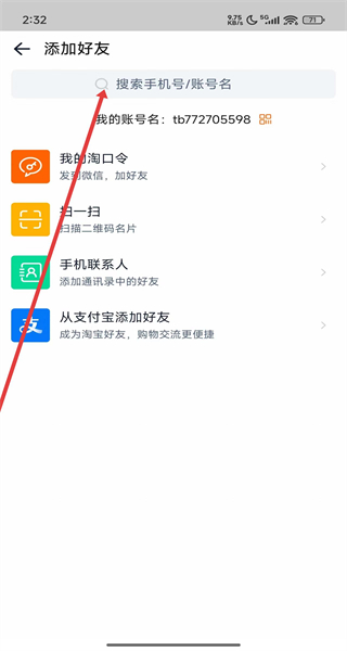 3、在跳轉(zhuǎn)到添加好友頁面,點擊搜索欄,進行搜索好友手機號賬號信息進行添加。