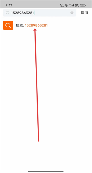 4、進入到搜索頁面后,在輸入框中填寫好對方手機號是,點擊下方搜索結(jié)果即可完成添加。