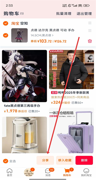 3、可以勾選喜歡的商品,點擊分享按鈕,進行分享操作。