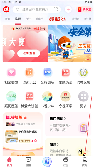 1、打開(kāi)手機(jī)江西臺(tái)APP,進(jìn)入首頁(yè)點(diǎn)擊右下角我的圖標(biāo)。
