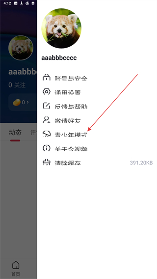 3、在右側(cè)彈出的菜單欄中,選擇并點(diǎn)擊青少年模式。