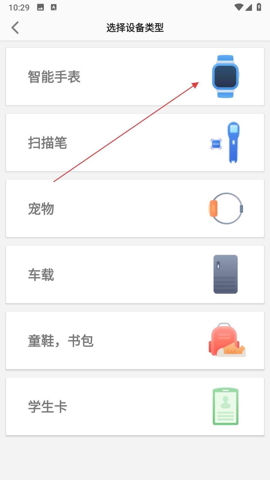 2、在設(shè)備類型選擇頁面,點(diǎn)擊需綁定的設(shè)備類型,進(jìn)入該設(shè)備的添加頁面。