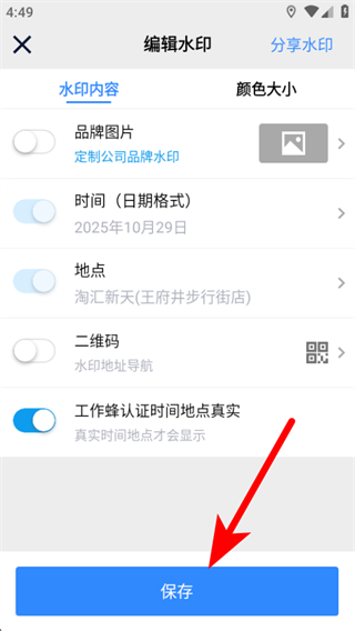 1、打開工作蜂水印相機(jī)應(yīng)用,進(jìn)入編輯水印相關(guān)頁(yè)面。