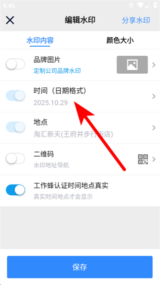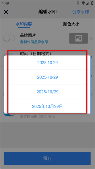 2、在編輯水印頁(yè)面中,找到時(shí)間日期格式選項(xiàng)并點(diǎn)擊。