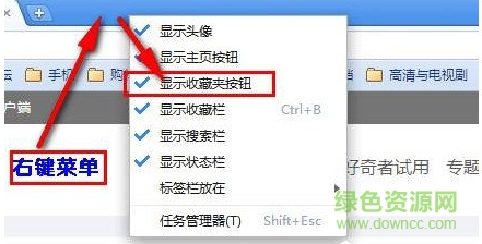1、360極速瀏覽器的收藏夾在哪里:請先打開已安裝的360極速瀏覽器,然后在圖中所示位置右鍵將【顯示收藏夾按鈕】選項(xiàng)勾選,收藏夾就會在界面上展示了。