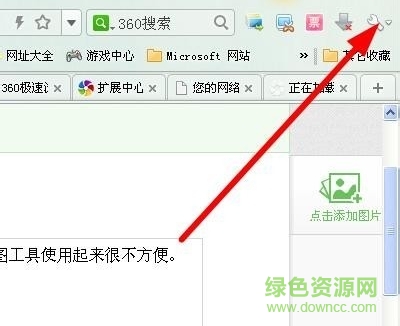 1.首先我們先打開360極速瀏覽器,然后根據(jù)提示找到工具這個(gè)按鈕,如圖所示:單擊右上角處的這個(gè)工具按鈕。