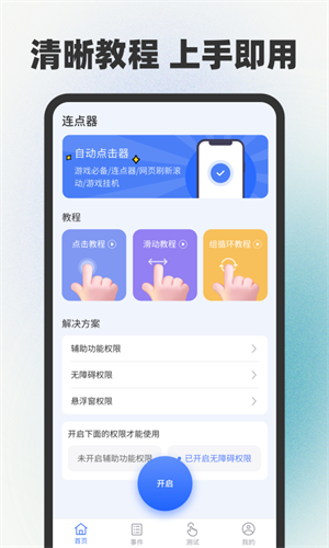 1、連點器是一款無需ROOT權限,即可幫你輕松實現全自動掛機的連點器軟件,只有你想不到,沒有它做不到,全場景適配的自動點擊、連點,讓你告別手動點擊的煩惱;