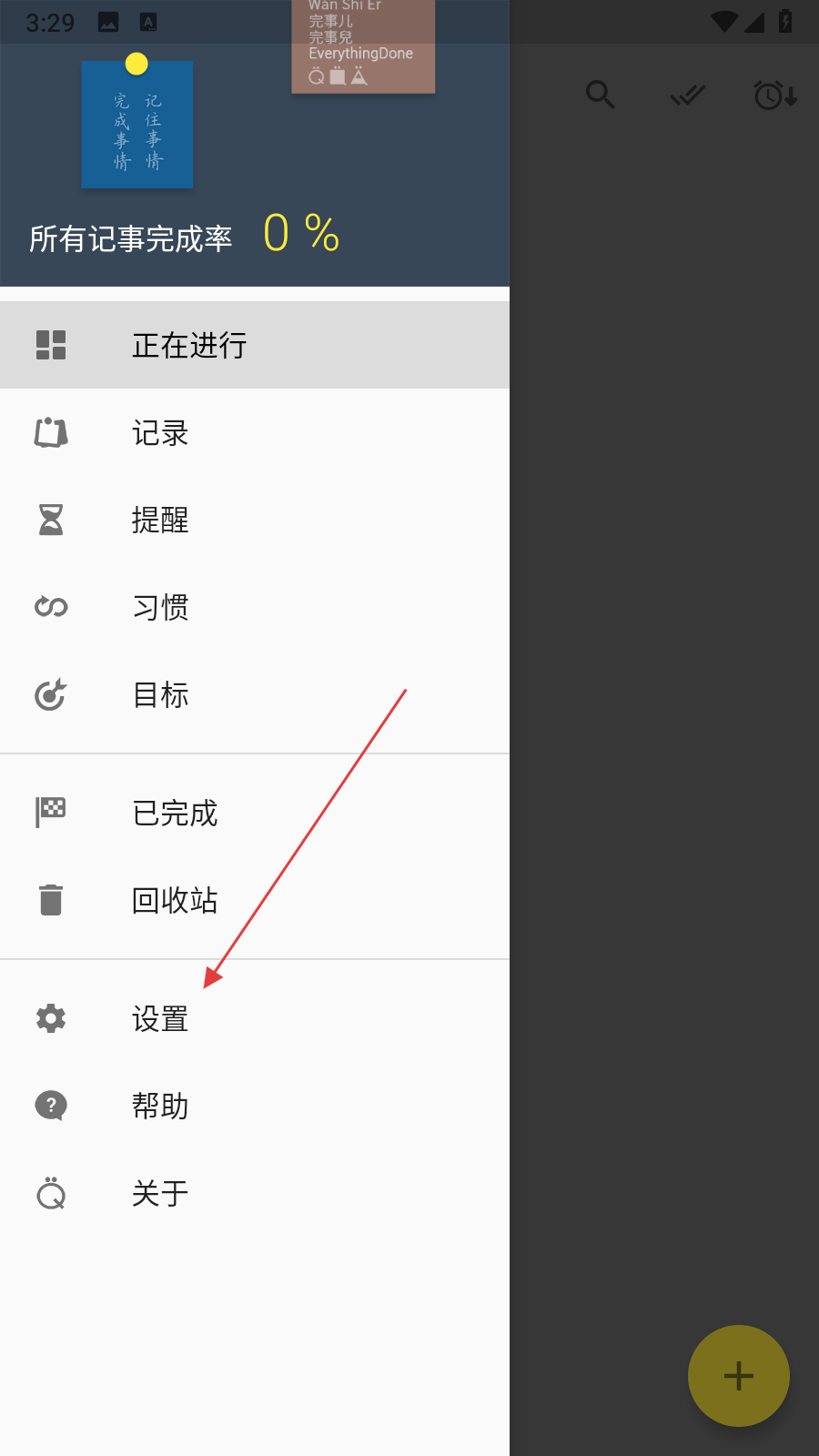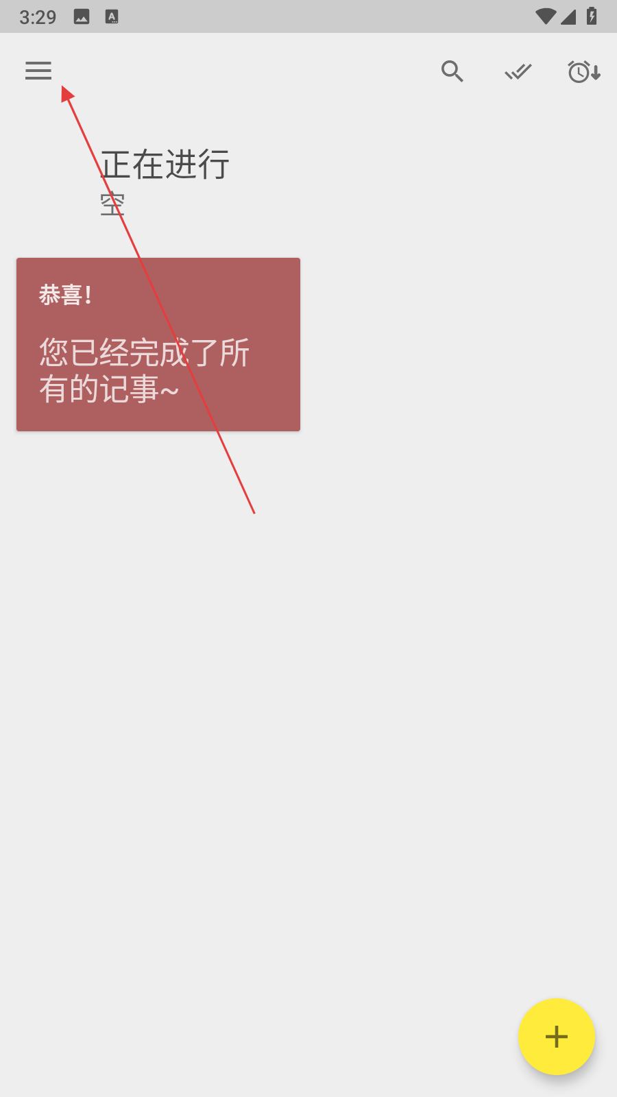 1、打開(kāi)完事兒APP,點(diǎn)擊界面左上角的三條橫線菜單按鈕,展開(kāi)側(cè)邊欄菜單。