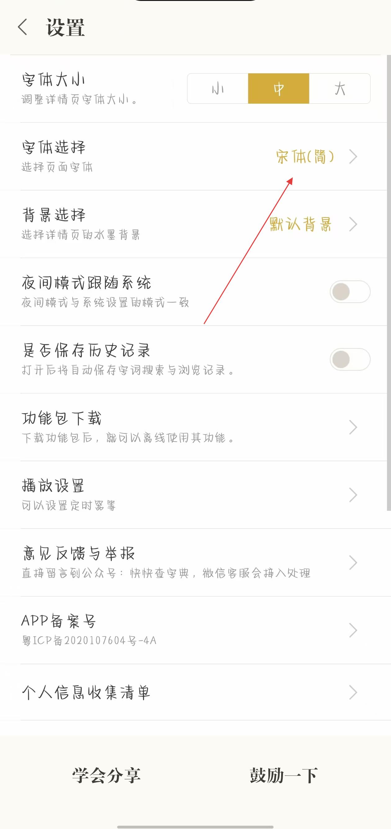 3、在設(shè)置界面里,找到字體選擇選項(xiàng)并點(diǎn)擊,進(jìn)入字體選擇頁面。