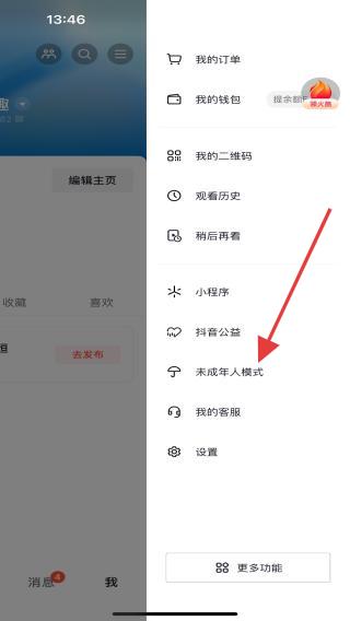 3、在彈出的菜單中找到未成年人模式并點擊。