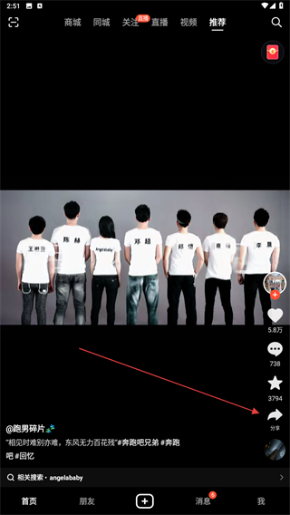 1、打開火山小視頻的APP,在首頁內(nèi)點擊右側分享的按鈕。
