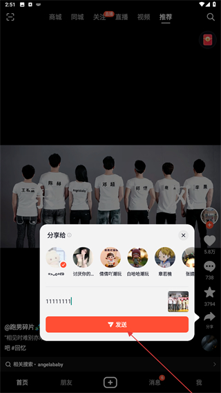 3、選擇后,再輸入分享內(nèi)容并點擊發(fā)送按鈕即可分享成功。