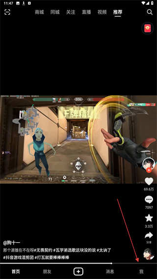 1、啟動火山小視頻,在首頁內(nèi)點擊導航欄中我。