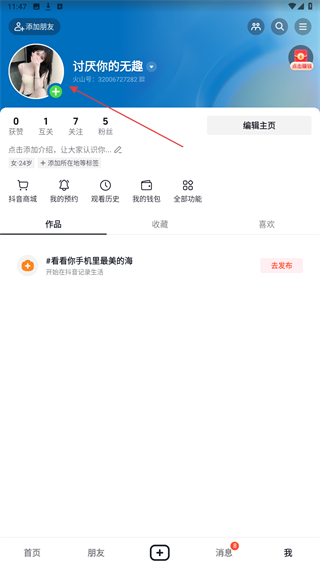 2、進入我的主頁內(nèi),點擊頭像的區(qū)域位置。