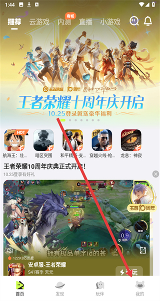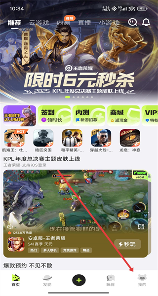 1、打開騰訊先游APP,點擊底部導航欄中的我的選項。