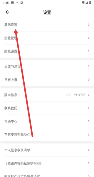 3、在設置界面中選擇“基礎設置”選項,進入基礎設置界面。