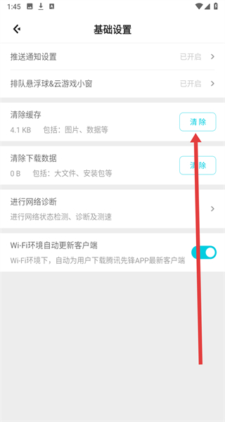 4、在基礎設置界面中找到“清除緩存”選項,點擊右側(cè)的“清除”按鈕,即可完成緩存的清理。
