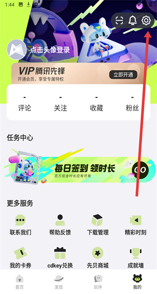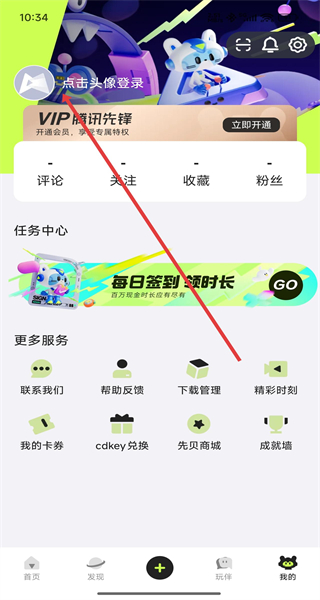 1、在騰訊先鋒首頁點擊右下角“我的”,可以進入個人中心頁面。