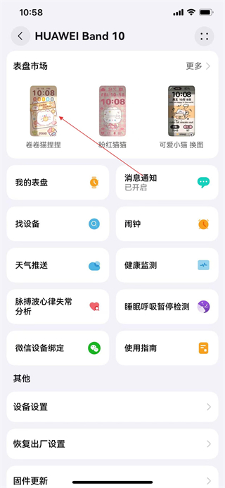 2、在設(shè)備管理頁面的表盤市場區(qū)域,點(diǎn)擊目標(biāo)表盤,進(jìn)入表盤市場頁面。