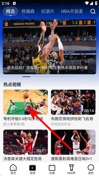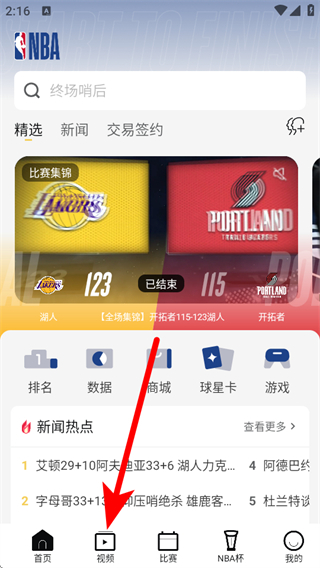 1、在NBA app首頁(yè),點(diǎn)擊下方視頻選項(xiàng),進(jìn)入視頻頁(yè)面。