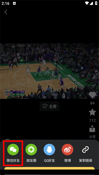 4、在分享渠道列表中,點(diǎn)擊微信好友選項(xiàng),即可將視頻分享到微信。