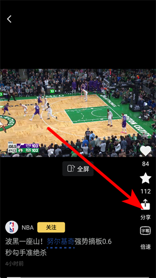 3、在視頻播放界面,點(diǎn)擊右側(cè)分享選項(xiàng),彈出分享渠道列表。