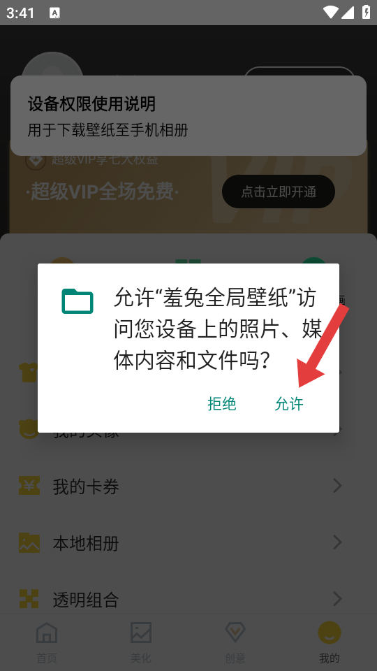 2、彈出允許權(quán)限請(qǐng)求框時(shí),我們需要點(diǎn)擊允許,授予應(yīng)用訪問本地相冊(cè)的權(quán)限。