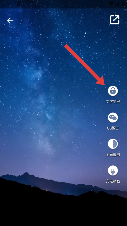 4、在壁紙預(yù)覽頁面,點(diǎn)擊右側(cè)功能欄中的文字鎖屏按鈕,可以將選中的圖片/視頻設(shè)置為鎖屏壁紙。