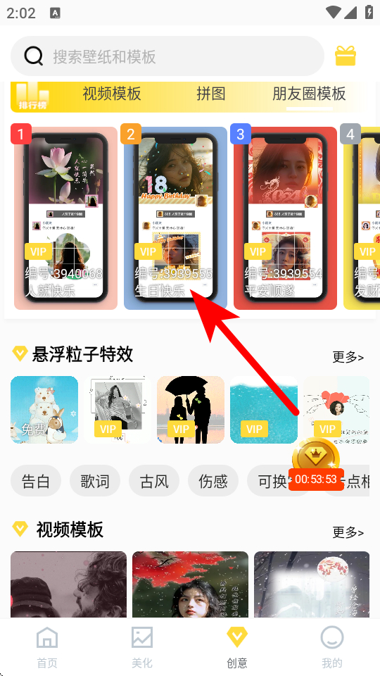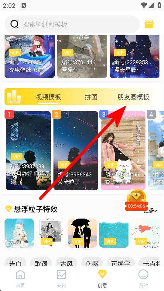2、在創(chuàng)意頁面,點(diǎn)擊朋友圈模板選項(xiàng),進(jìn)入朋友圈模板列表界面。