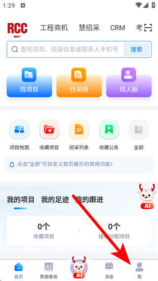 1、打開工程招采APP,點(diǎn)擊右下角我,進(jìn)入個(gè)人頁面。