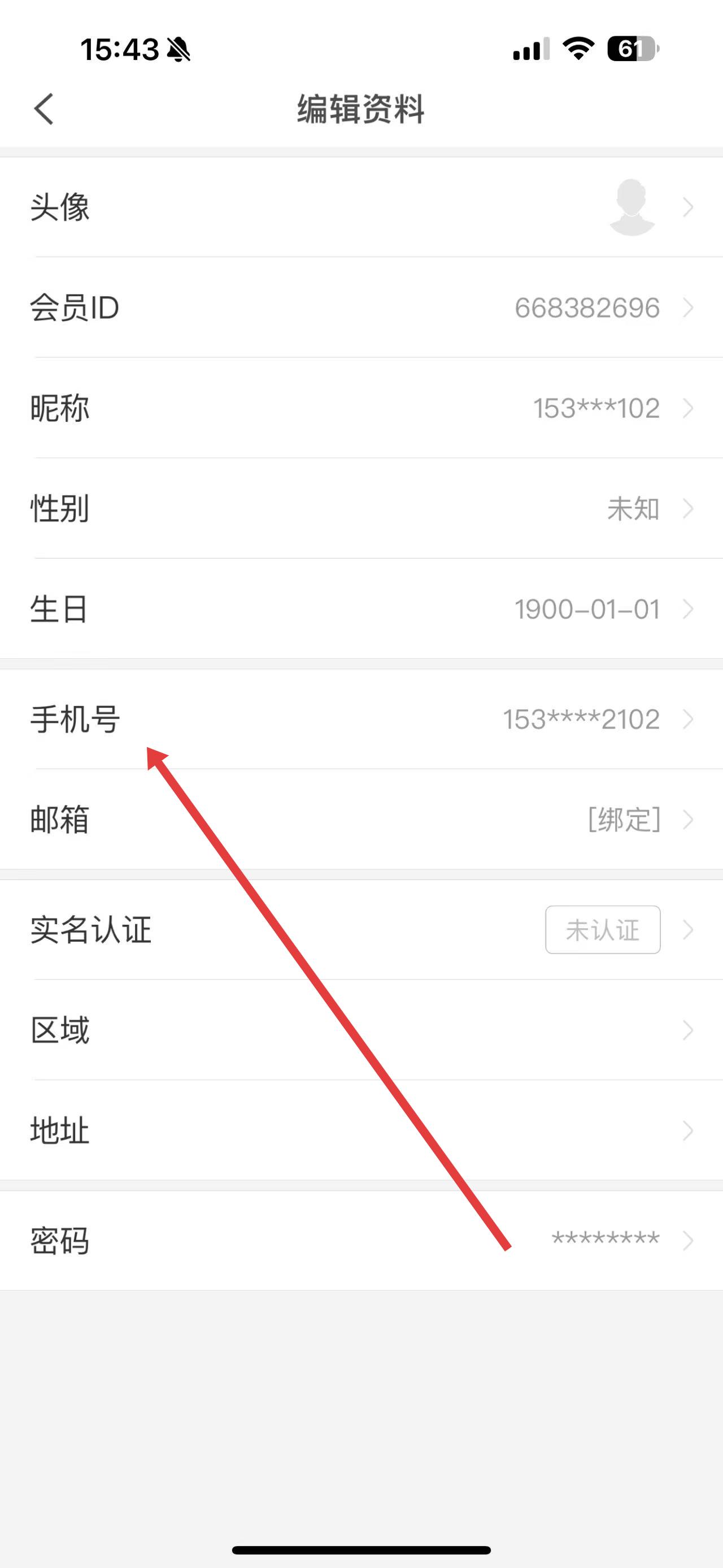 3、在編輯資料頁面里,找到并點(diǎn)擊手機(jī)號(hào)選項(xiàng)進(jìn)入綁定手機(jī)頁面。