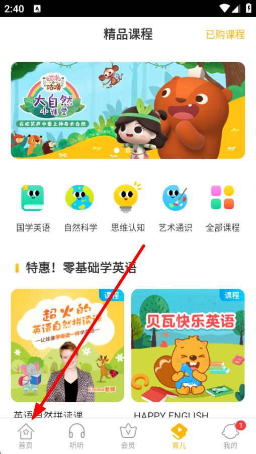 1、打開貝瓦兒歌App,點(diǎn)擊底部首頁(yè)頁(yè)面進(jìn)入。