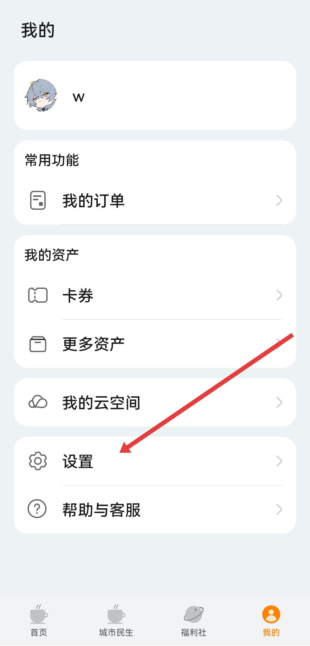 2、在我的頁面中,需要找到設(shè)置的選項(xiàng)并點(diǎn)擊,進(jìn)入設(shè)置的界面。