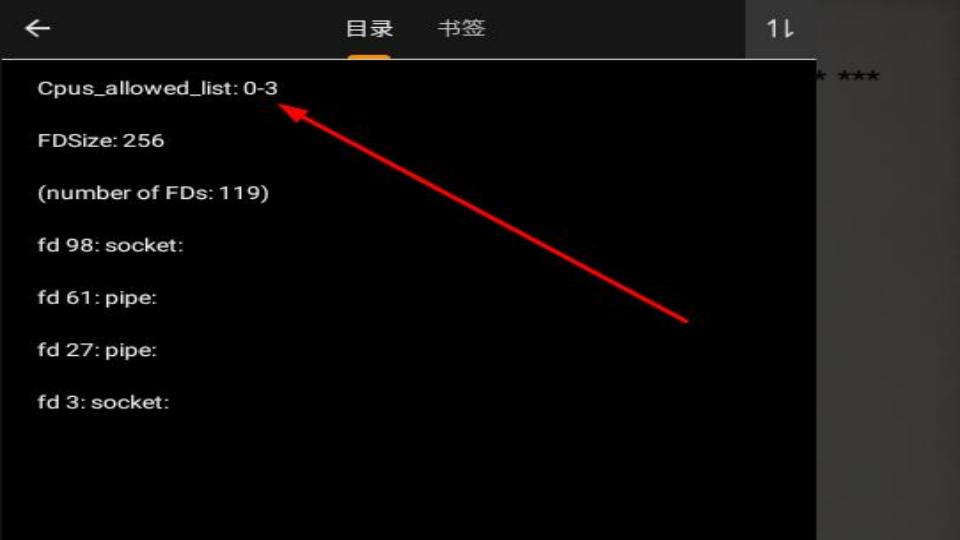 3、打開導(dǎo)入文件,查看系統(tǒng)信息如Cpus_allowed_list參數(shù),了解設(shè)備運(yùn)行數(shù)據(jù),輔助分析系統(tǒng)狀態(tài)。