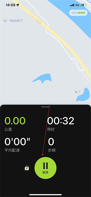 2、在運動頁面點擊底部的暫停,暫停當前運動進程。