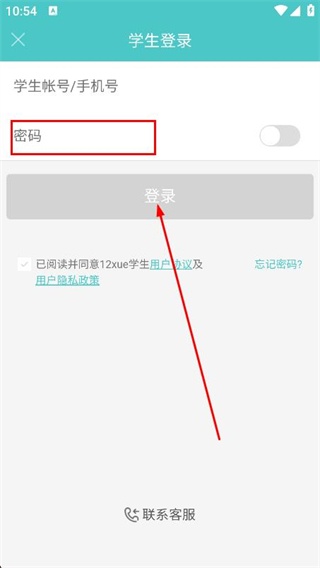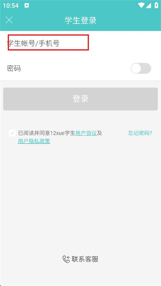 3、在學生登錄頁面,點擊輸入框,輸入學生帳號/手機號。