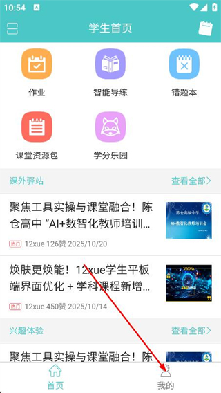 1、打開12學app,點擊底部導航欄中的我的選項。