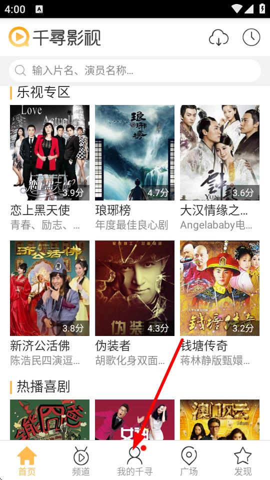 1、打開千尋影視app,點擊底部導(dǎo)航欄中間的我的千尋選項。